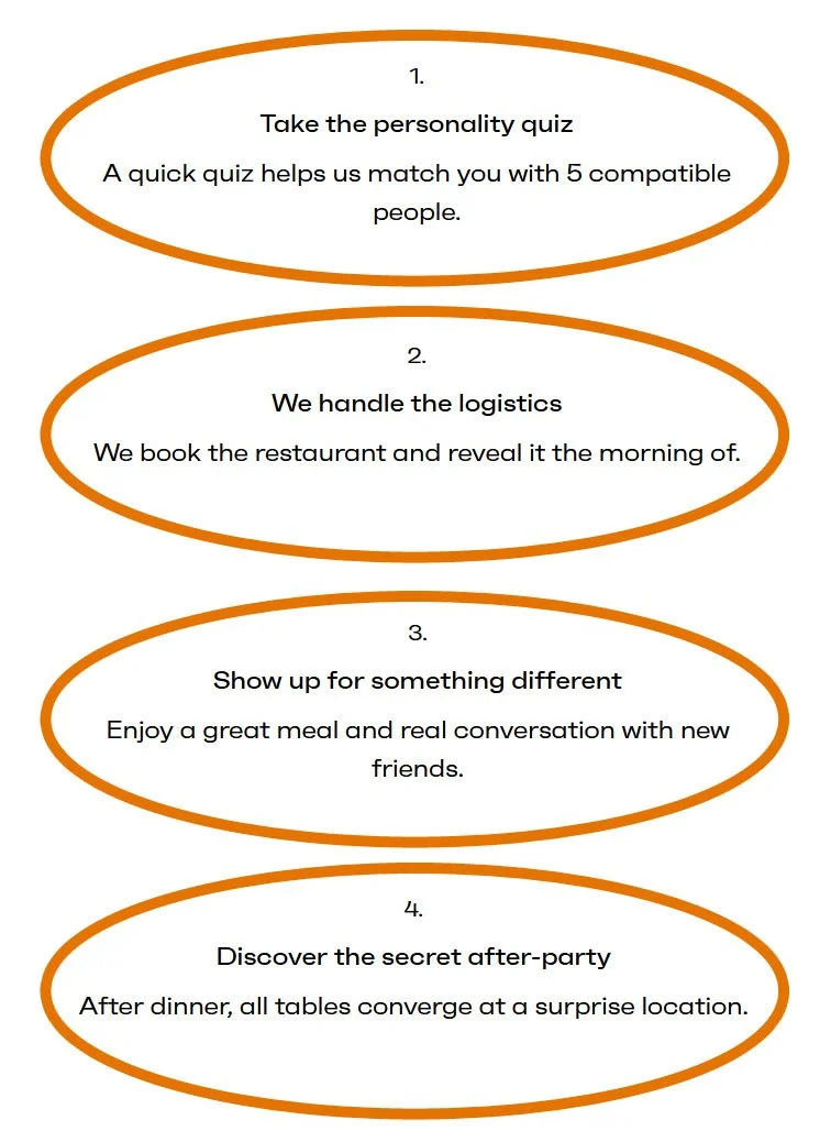 On Thursday, April 23 at 6pm, we're inviting you to sit down with 5 other community members for a dinner at a restaurant in Dover.