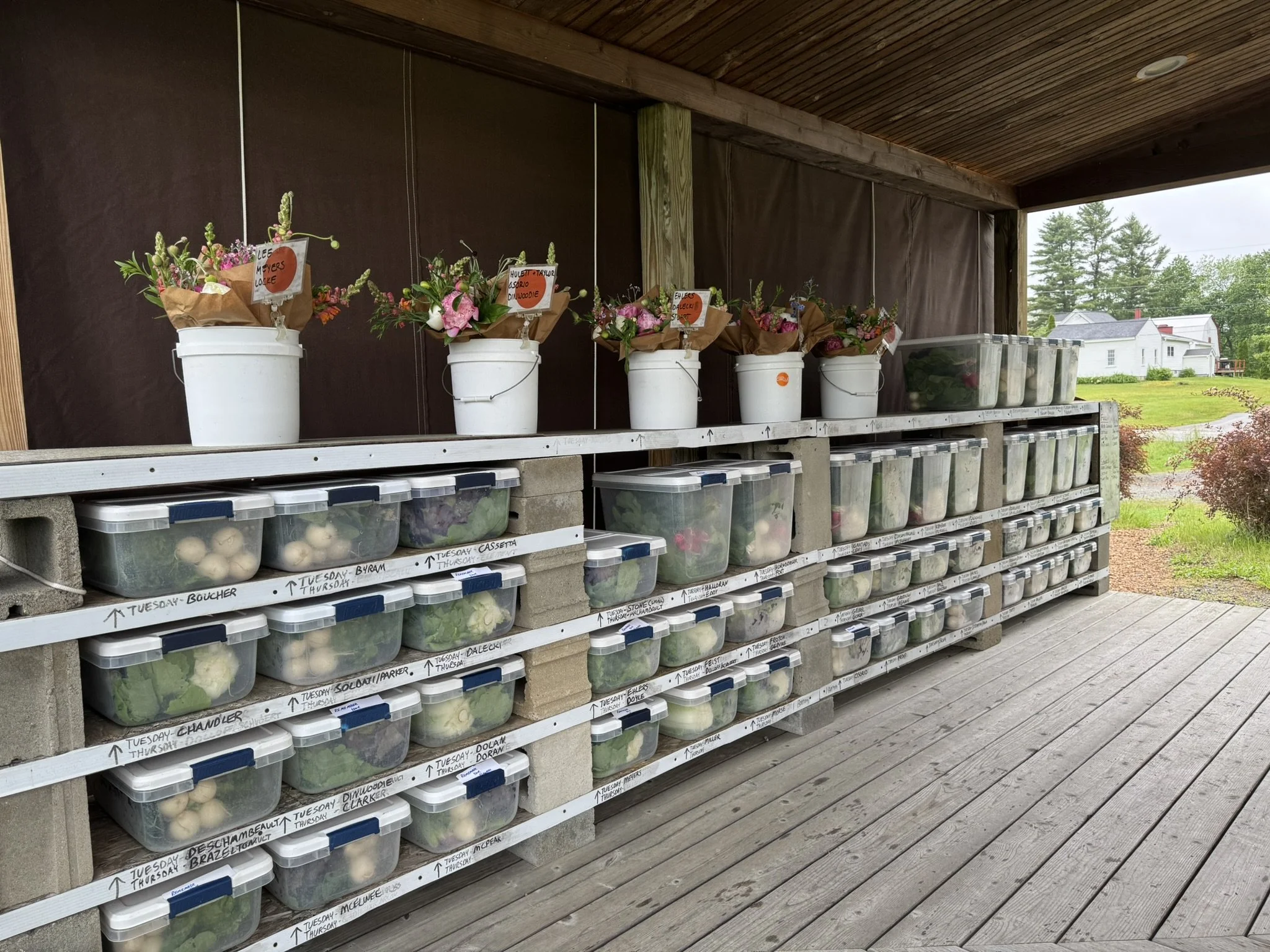 Your vegetables are pre-packed in a clean plastic bin each week. You will need to bring your own bags/boxes/cooler to transfer your vegetables into and leave the bin at the pickup.